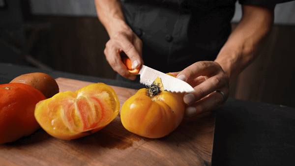 It doesn't shred tomatoes the way that your average serrated knife does. It's a keeper, and has earned a permanent place in my knife roll.
