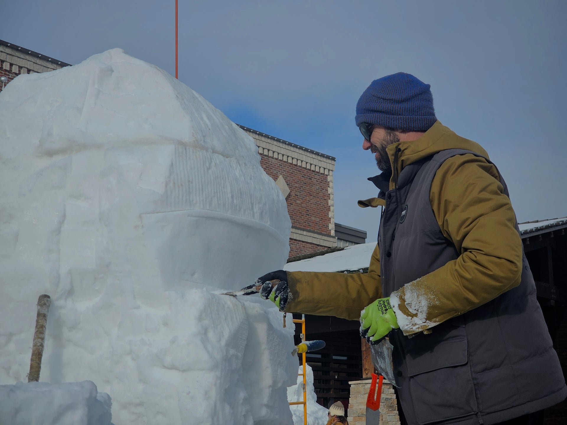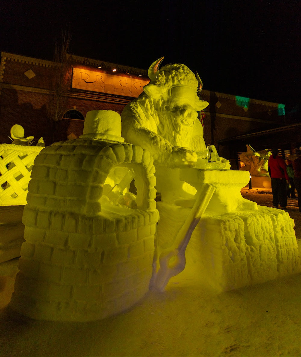 - Erin Hemmings set the tone early with a 3D model that quickly became the talk of the snow sculpting community. The ice-sculpted bison horns he created were a defining feature of the final piece.