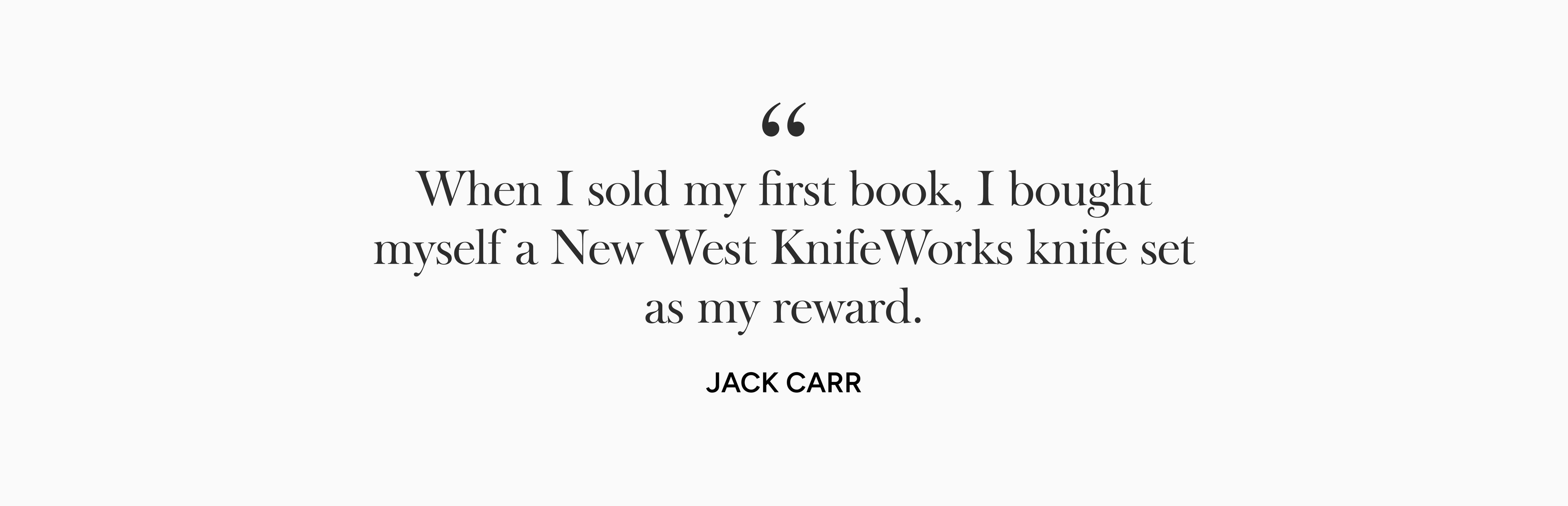 As the opening scene of The Terminal List suggests, Jack Carr admires Jackson Hole, home of New West KnifeWorks. Jack long had his eye on the knives in the window at New West’s flagship shop. “When I sold my first book, I bought myself a New West KnifeWorks knife set as my reward,” Jack has said. James Reece, the protagonist of Carr’s bestselling series, is gear obsessed like his creator. Fans appreciate the authentic details about the equipment Reece employs in his adventures. The importance of having the right tool for the job is likewise an obsession for New West KnifeWorks’ owner, Corey Milligan.