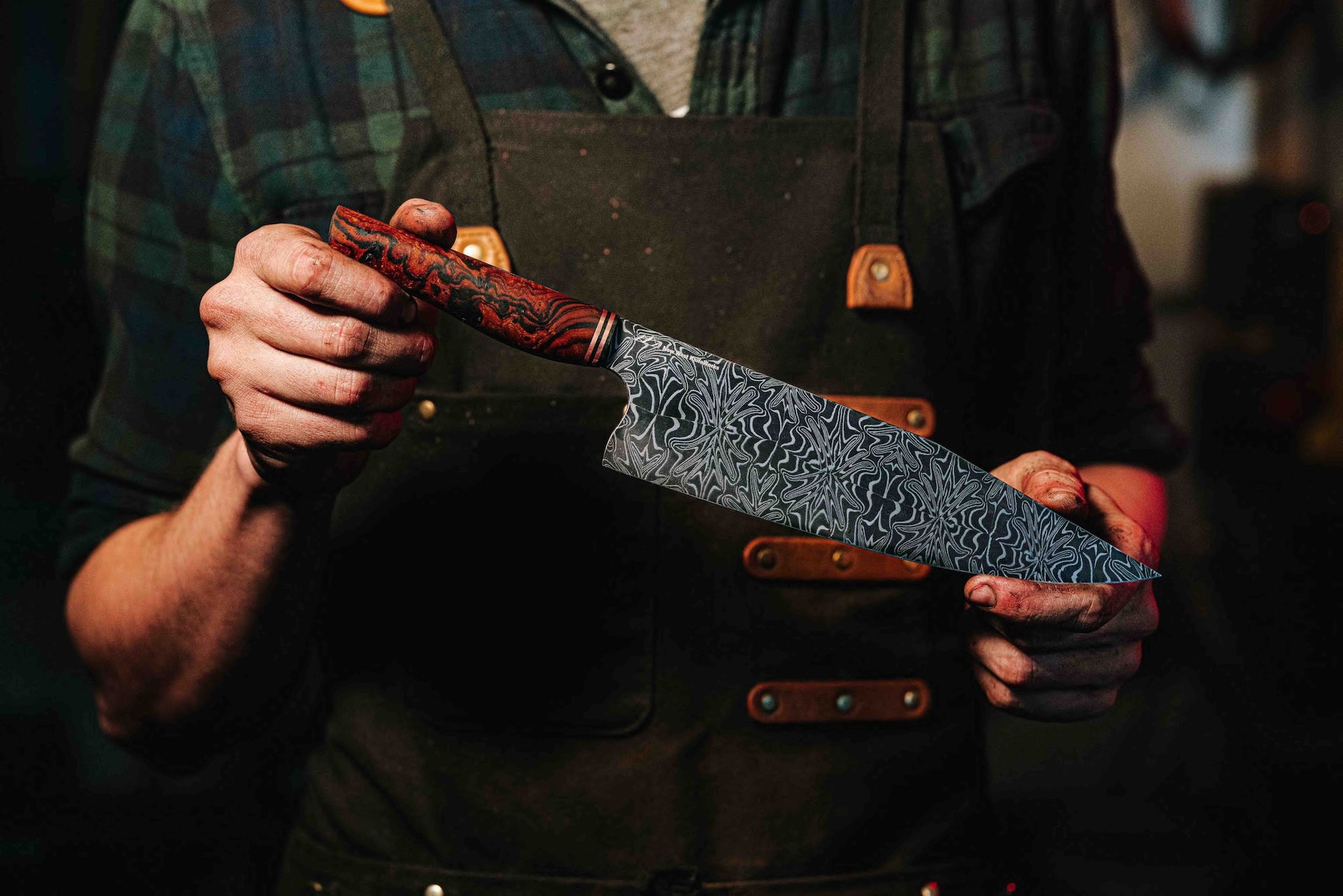 Representing tradition on the cutting edge. Our custom Damascus chef knives embody enduring beauty and precision, transforming tools into functional art.