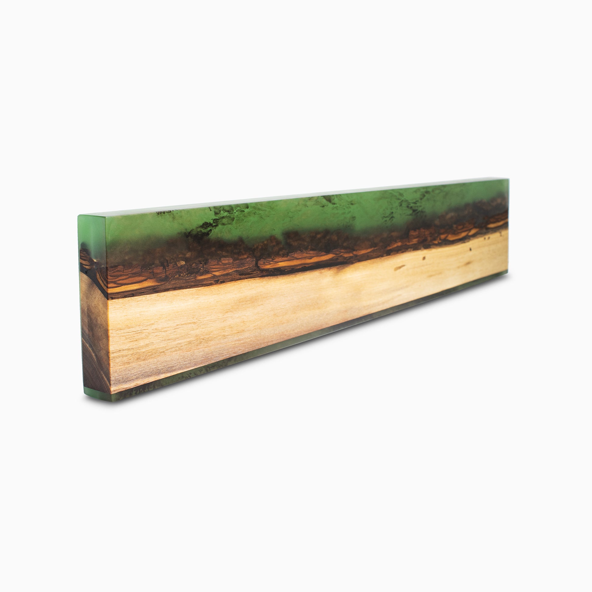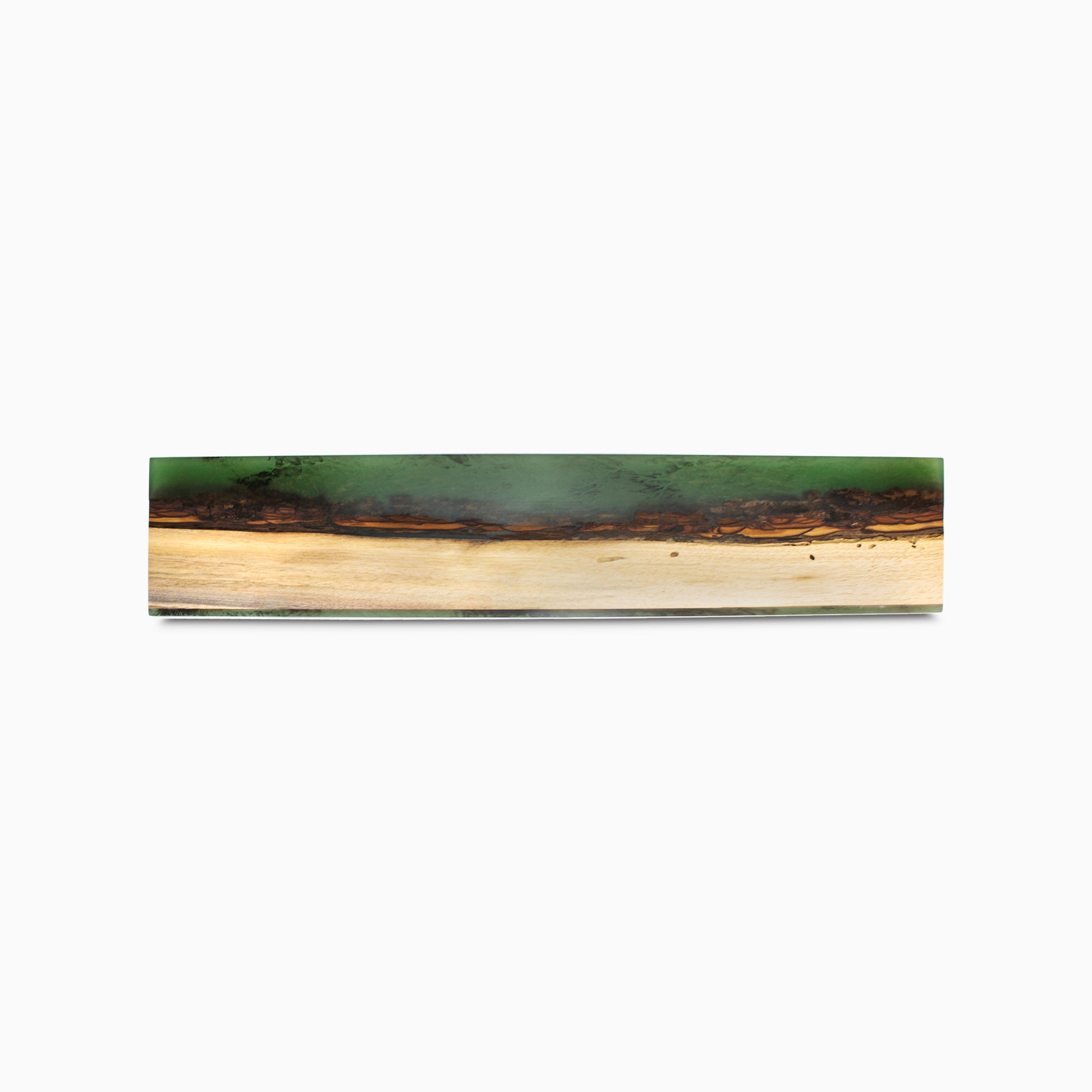 Discover the pinnacle of knife storage: a blend of artistic design and functionality. Meticulously handcrafted in the USA using Walnut Wood and Green epoxy resin.