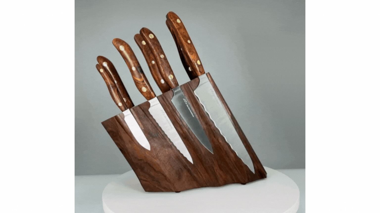 The Arete is adaptable and will support anywhere from 3-7 knives of different lengths and shapes. The block is designed to beautifully display your knives as you build your collection over time.