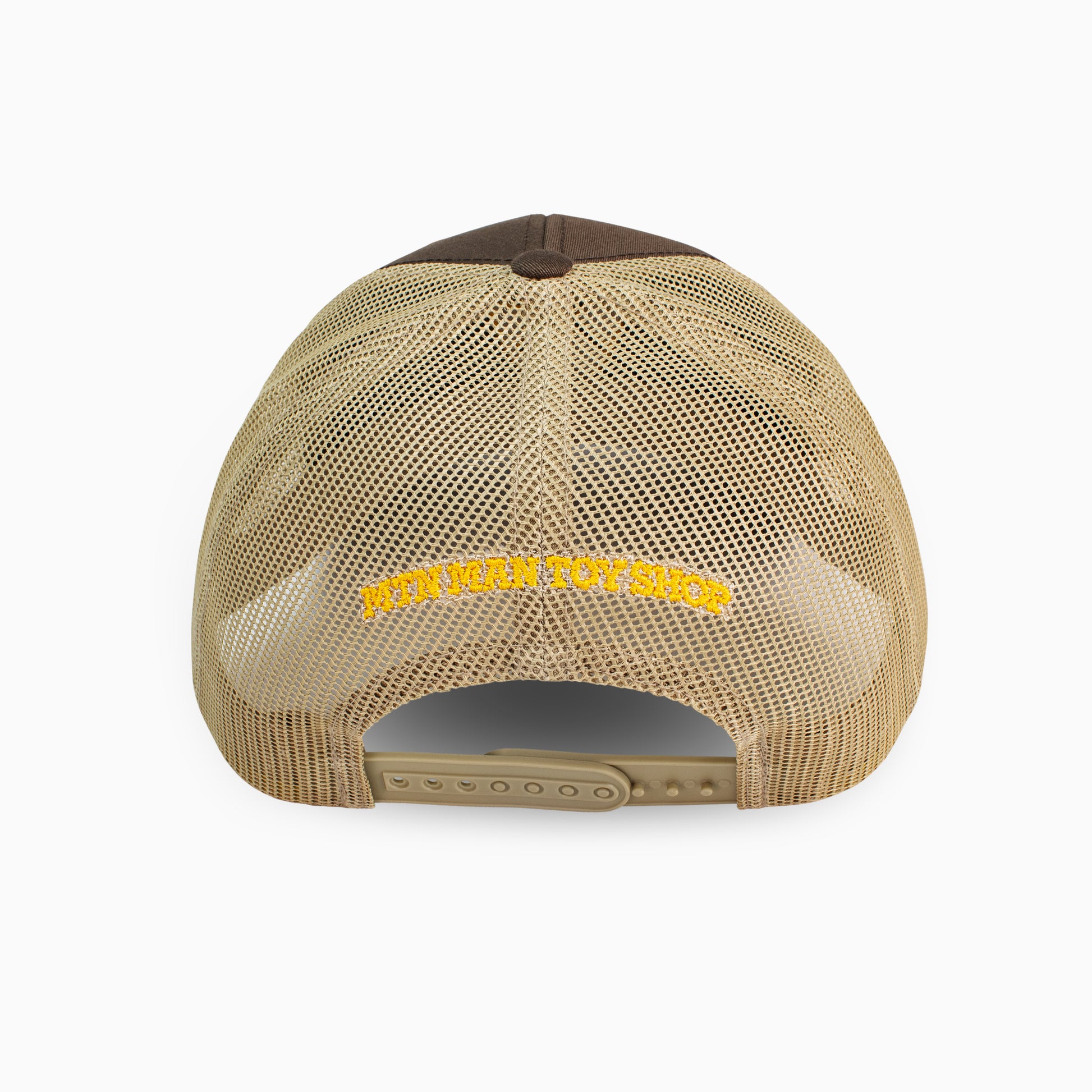 Designed with a rich brown cotton front and breathable tan mesh back, this classic trucker features the Mountain Man Toy Shop shield embroidered in bold yellow — a symbol of adventure, craftsmanship, and Western heritage. The earthy colorway feels right at home under big skies, whether you're strolling Town Square or heading out beyond the Tetons.