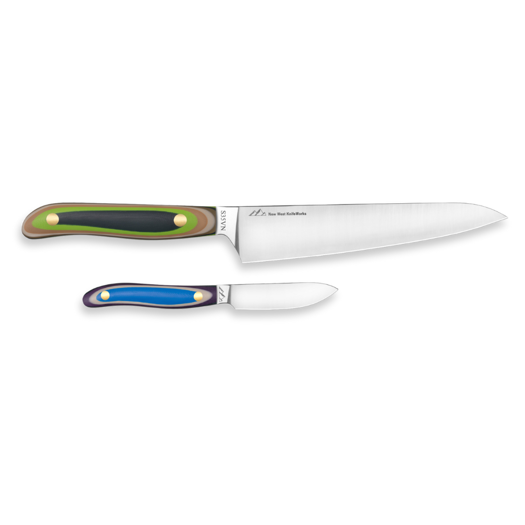 This classic combo covers everything you need on the cutting board. Conventional wisdom says you need two knives to take care of business, a chef knife and a paring knife. If you or your loved one is kindling a passion for cooking- quality knives will get the fire going. The Classic Starter set is a great investment for a lifetime of culinary adventure.