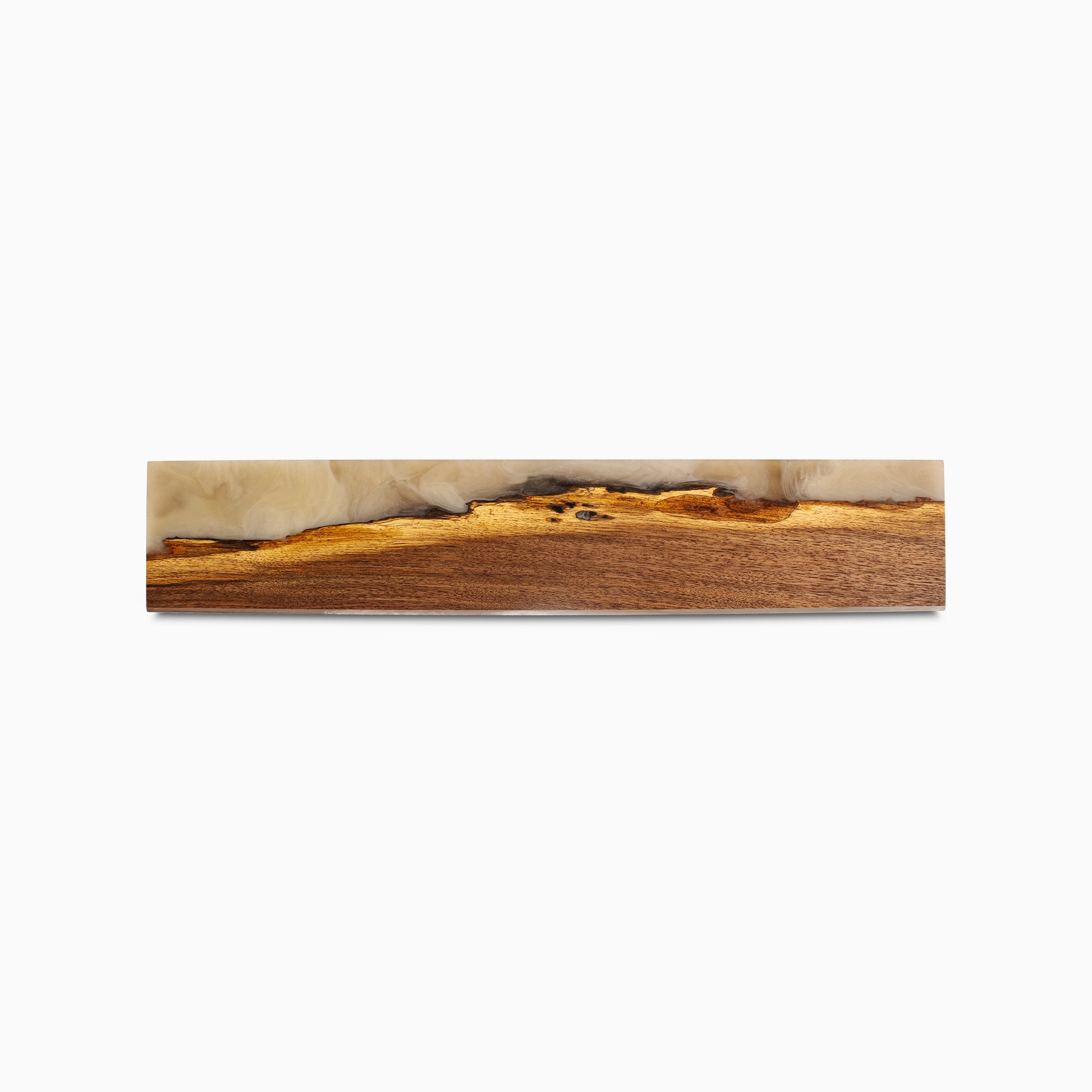 Discover the pinnacle of knife storage: a blend of artistic design and functionality. Meticulously handcrafted in the USA using Walnut Wood and Tan epoxy resin.