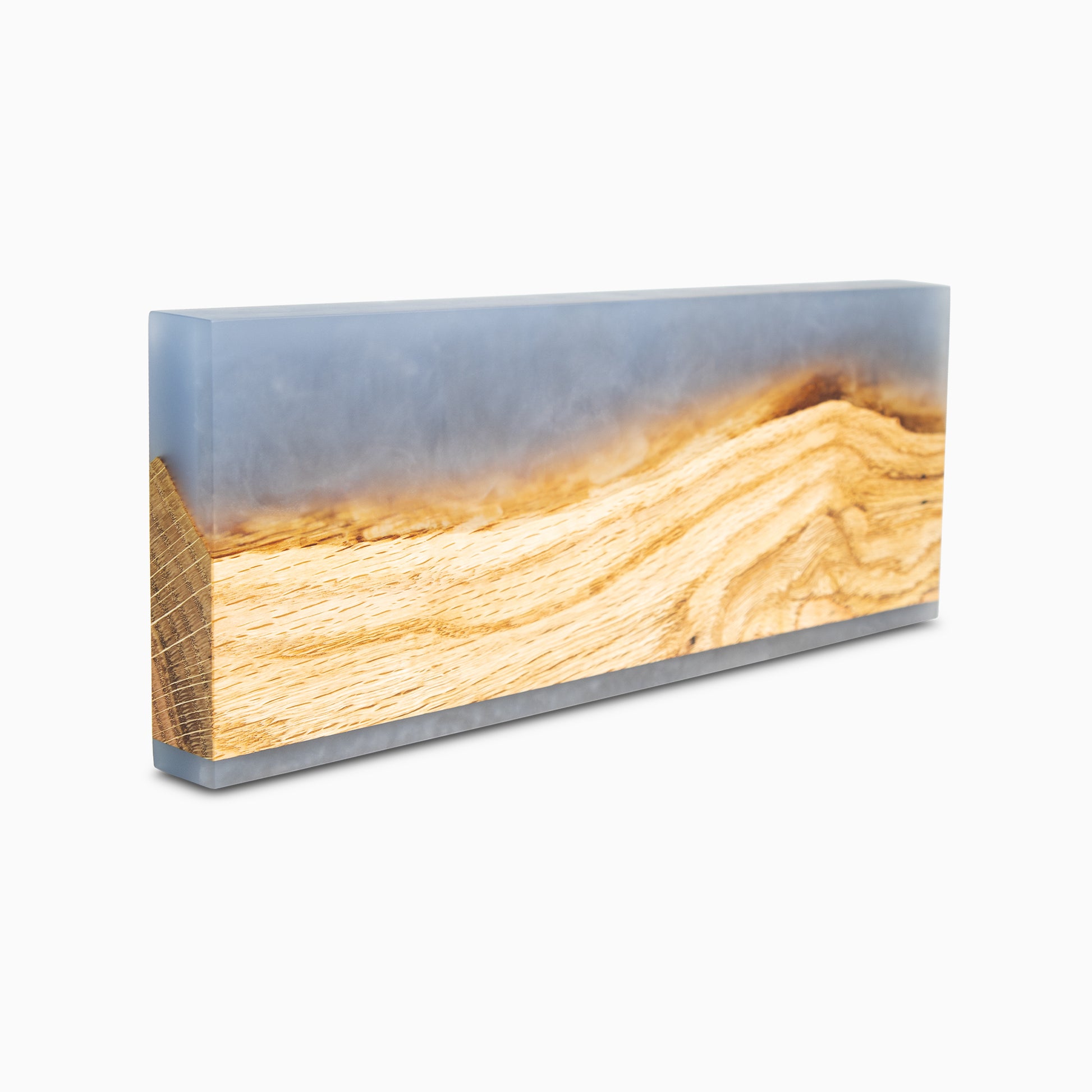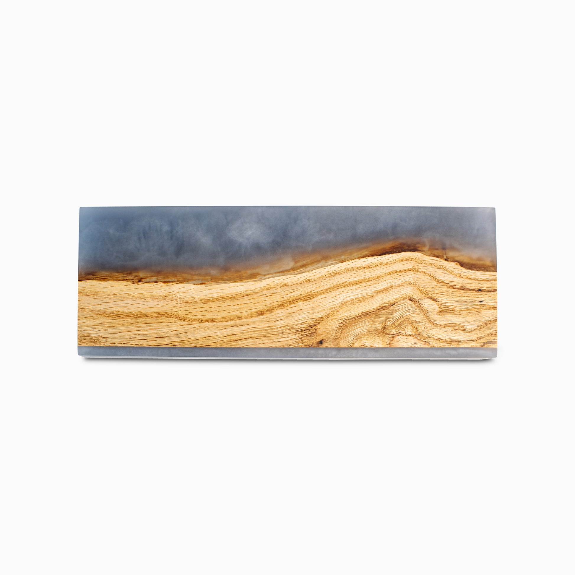 Discover the pinnacle of knife storage: a blend of artistic design and functionality. Meticulously handcrafted in the USA using Oak wood and Blue epoxy resin.