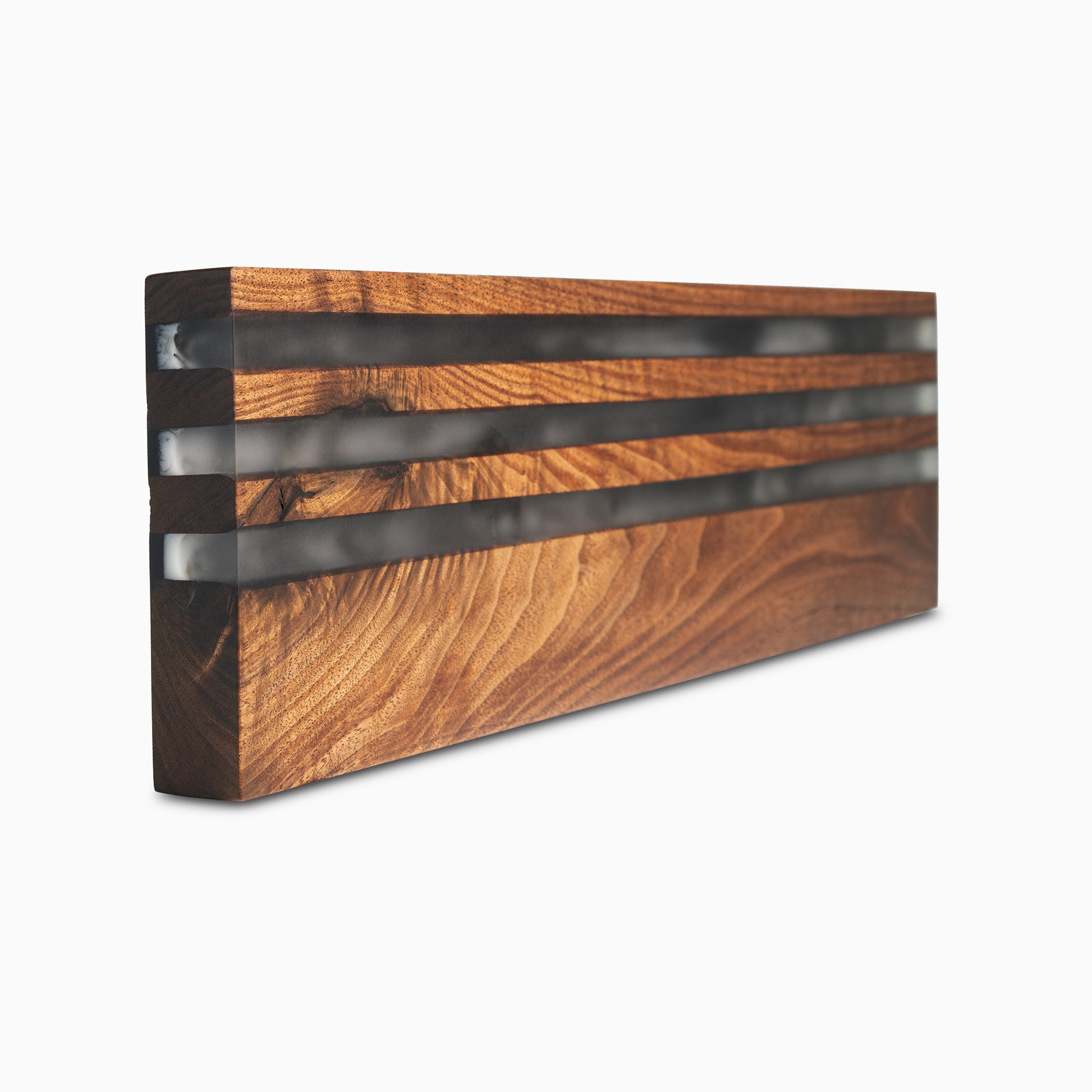 Discover the pinnacle of knife storage: a blend of artistic design and functionality. Meticulously handcrafted in the USA using Walnut wood and Grey color epoxy resin.