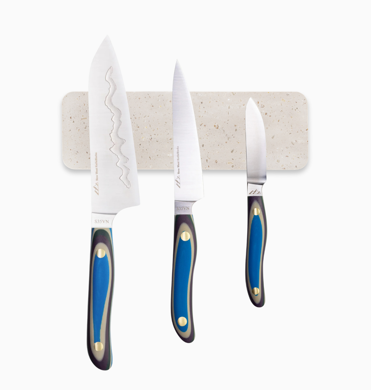 The Mise Magnet is crafted from non-porous, stain-resistant Corian, offering a seamless, durable design that resists heat up to 212°F and maintains its beauty for years. Each knife is held securely in place by two strong magnets, ensuring stability. It installs easily on smooth, clean surfaces like metal, glass, and tile using high-strength 3M aircraft-grade adhesive. For best results, use a level when mounting, as repositioning is not an option. Built to hold three knives, it keeps your essentials within reach while elevating your kitchen’s style.