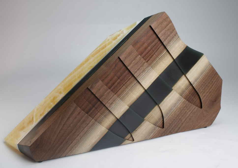 Materials: Black Walnut Wood, Aluminum, Granite with Mica Rock, Deep Green Resin