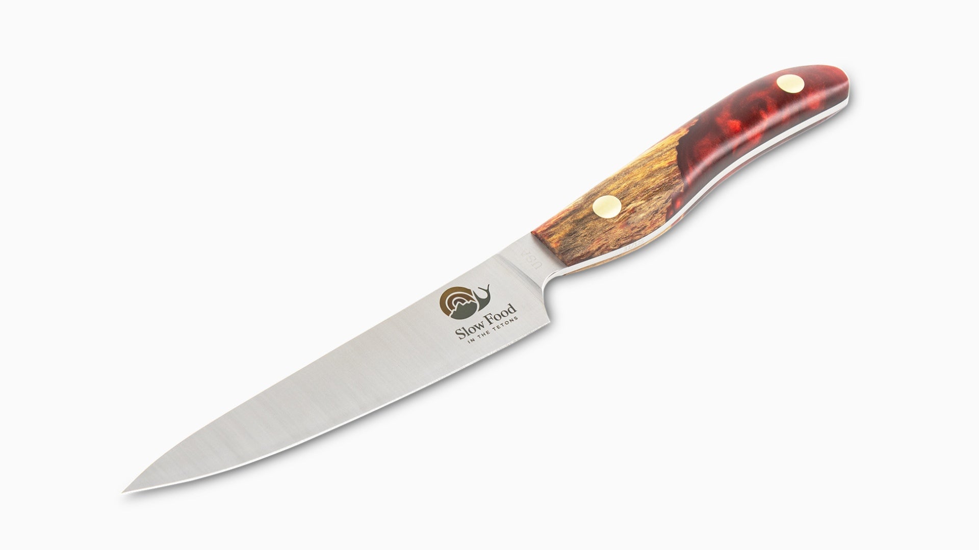 The Ultra-Giftable Knife. The blade is agile enough to trim delicate veggies and sturdy enough to bone out a chicken. It strikes the perfect balance between power and grace.