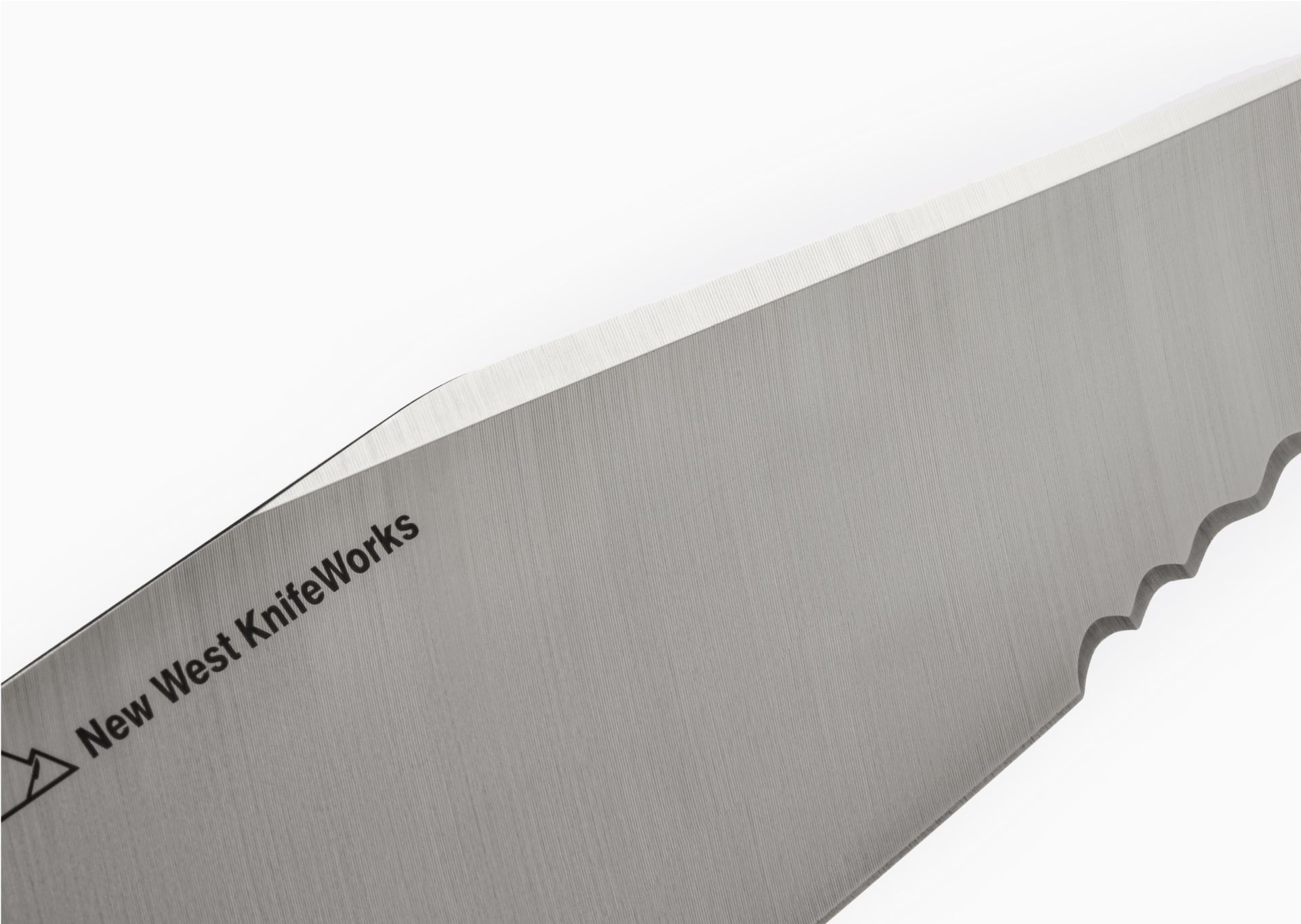 The TOC is designed to do everything around the campsite: cook, camp chores, or fend off bandits if the need arises. The CPM S35VN particle metallurgy, super-steel has the perfect balance of hardness and toughness for the task at hand. The Barracuda™ partial serration assures effortless slicing whether its tomatoes, bread or rope. The .150“ tang provides incredible stability for the keen .015” edge which will slice pronghorn antelope tenderloin into paper thin slices of Cowboy Carpaccio out on the range. The clip point makes the agile tip apt for paring knife duties, yet sturdy enough for critical damage in tactical applications.