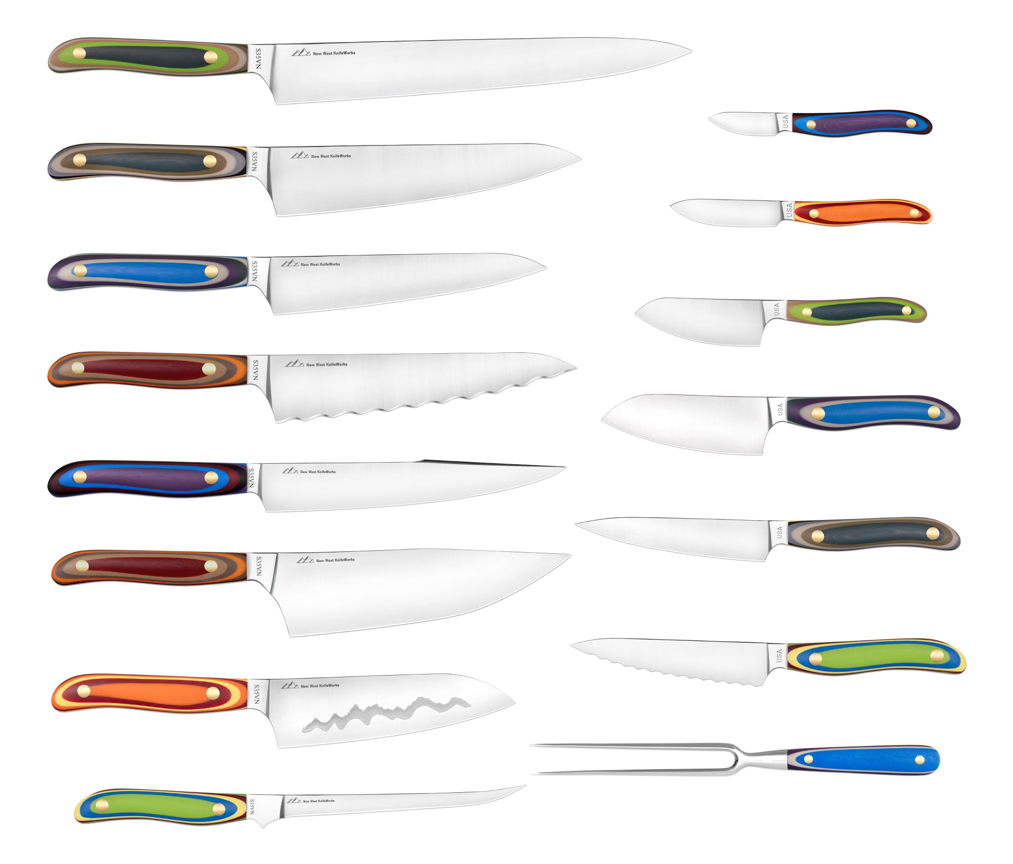 Because you like to be prepared, because you couldn't pick just one or two. This set features one of every chef worthy blade that we produce: 14 knives ranging from 12" to 2" and one gorgeous ceremonial carving fork. 100% American made materials that will last a lifetime. You will have the right tool for every job no matter what you're cooking up.