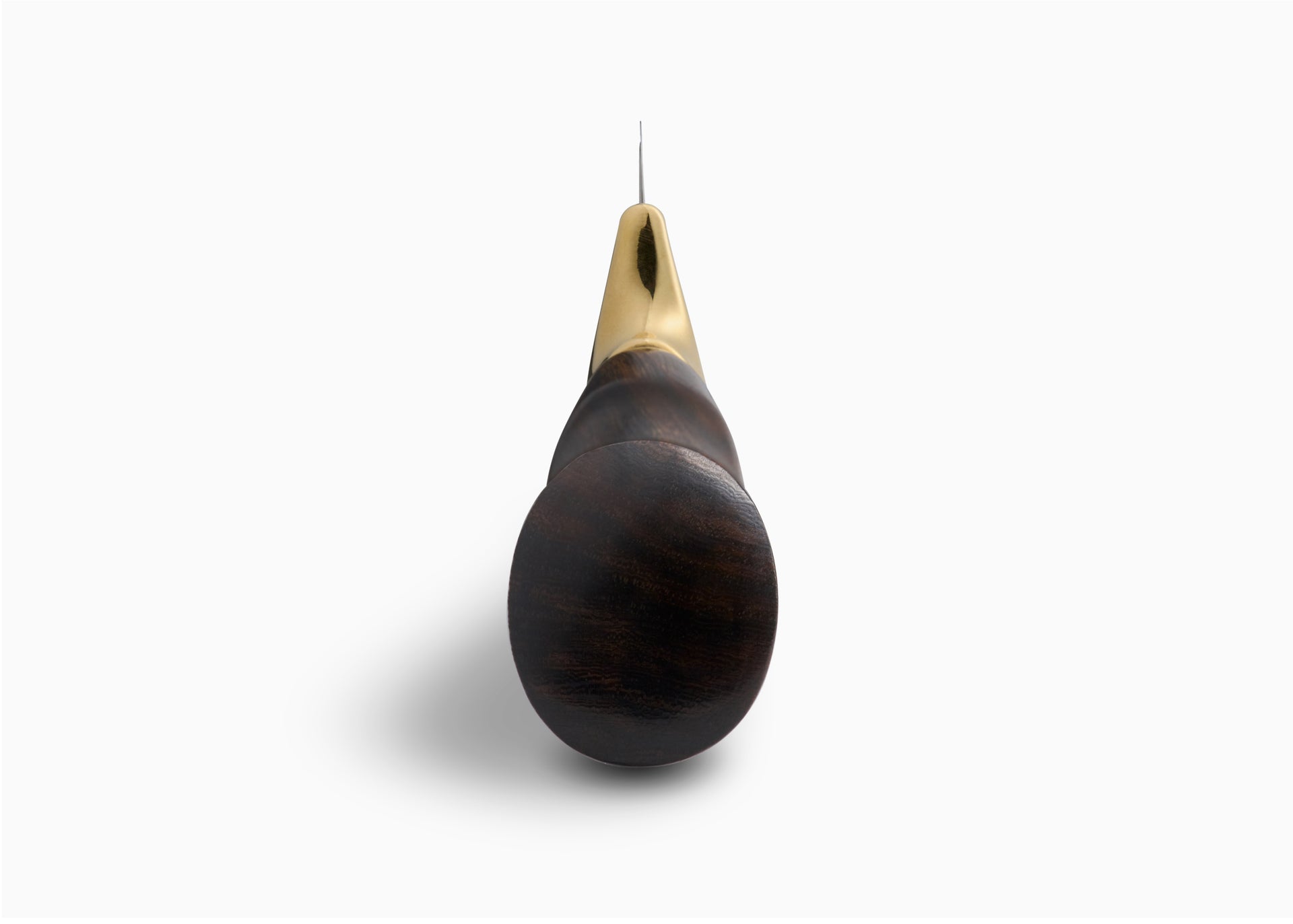 Our proprietary, precision ground joints lock the stick tang in place and create a bomb proof lock up between blade, brass guard and ironwood handle.