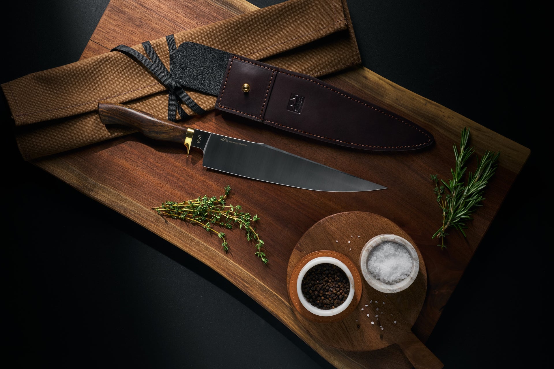 Combining CPM S35VN particle metallurgy, super-steel with a desert ironwood handle, this knife will “geter done” around the chuckwagon, spike camp, or any backyard barbecue.