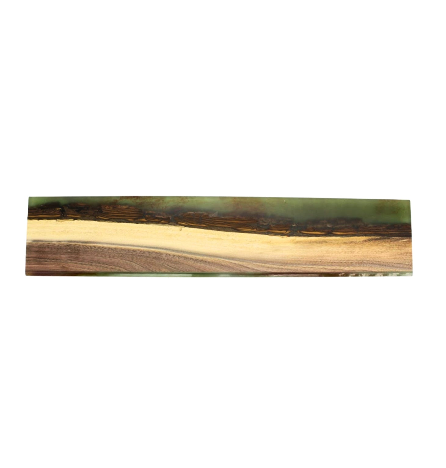 Discover the pinnacle of knife storage: a blend of artistic design and functionality. Meticulously handcrafted in the USA using Walnut Wood and Green epoxy resin.
