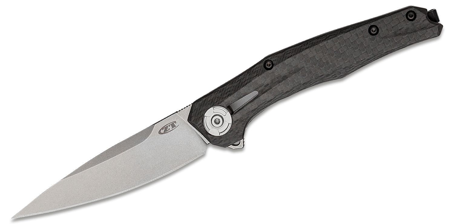 The handle features a titanium frame on one side and a carbon fiber scale on the other, offering a perfect balance of strength and weight. ZT’s Tuned Detent System allows for snappy, confident deployment using the custom-machined titanium flipper tab, while a secure frame lock keeps the blade rock-solid in use.